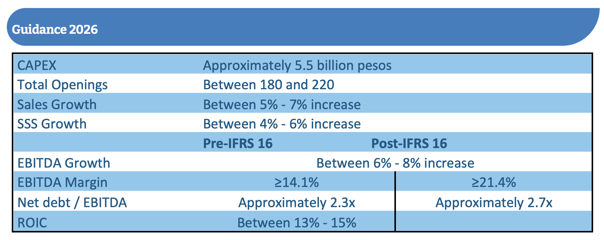 Mexico City, March 18th, 2026 —. Alsea, S.A.B. de C.V. (BMV: ALSEA*) “Alsea”, the leading Quick-Service Restaurants (QSR), Coffee Shop and Full-Service Restaurants operator in Latin America and Europe, announced during its investor day the guidance for 2026: