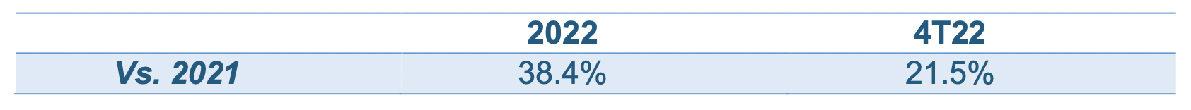 Incremento en las Ordenes Mismas Tiendas de 22.5% en el año completo en comparación con 2021 y 9.5% en comparación con el 4T21