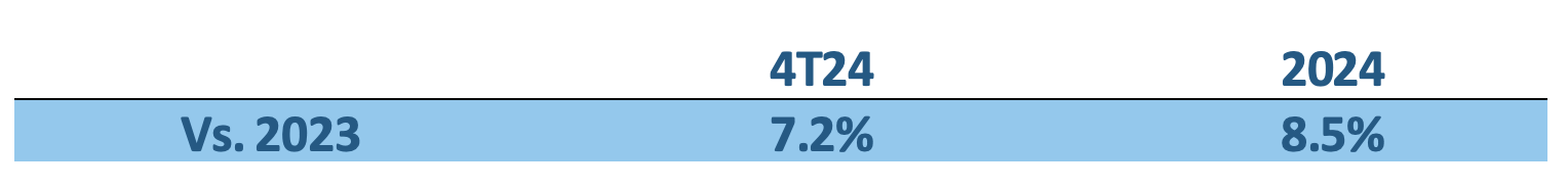 - Incremento de 8.5% en el EBITDA* del año completo y 13.0% en el cuarto trimestre, con márgenes del 15.0% y 16.4%, respectivamente, reflejando una expansión de 30pbs en ambos periodos