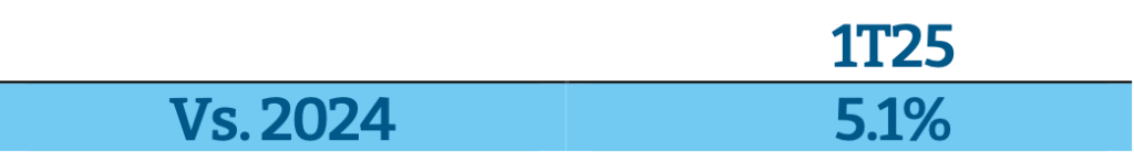 Índice de apalancamiento Deuda Neta / EBITDA* de 2.6x al cierre del 1T25