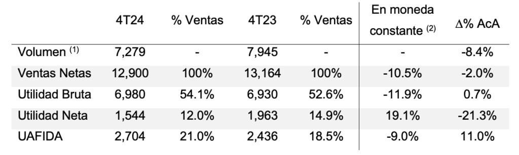 Las cifras en este comunicado proceden de los Estados Financieros Intermedios Consolidados de la Compañía al 31 de diciembre de 2024 y para los periodos de tres y doce meses que finalizaron a esa fecha y se preparan de acuerdo con las Normas Internacionales de Información Financiera (IFRS, por sus siglas en inglés).