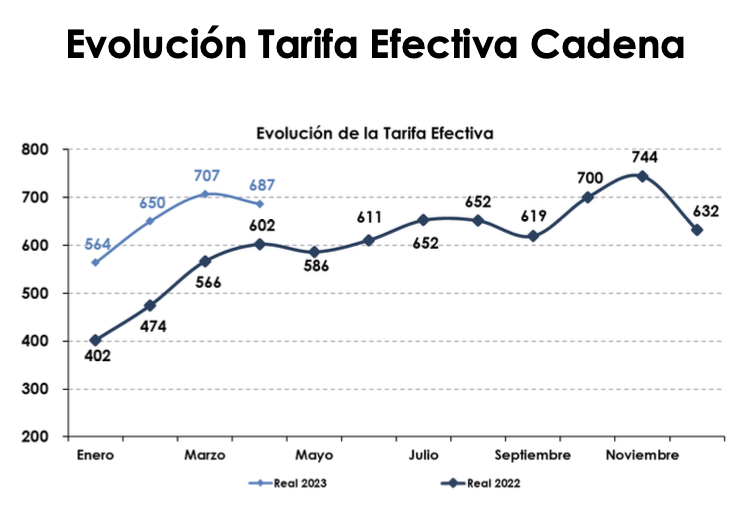 Durante el mes de abril, la tarifa promedio alcanzó nuevamente el nivel más alto en la historia de la Cadena. Resaltamos los buenos resultados de los hoteles en las zonas del Sureste, Noroeste y Noreste del país, las cuales han mantenido las tendencias de crecimiento observadas desde marzo. Igualmente, destacamos la recuperación de la zona Sur, Centro y del Bajío, las cuales tuvieron los incrementos más altos en estadísticas vs. el año anterior. La tarifa promedio de la Cadena se vio impulsada por los buenos resultados de los hoteles en la Frontera Norte, en zonas Metropolitanas y en el Pacífico, derivado de los efectos por nearshoring y las tendencias en el incremento de tráfico en los hoteles en zonas Metropolitanas y en hoteles de las marcas City Express Plus y City Express Suites.