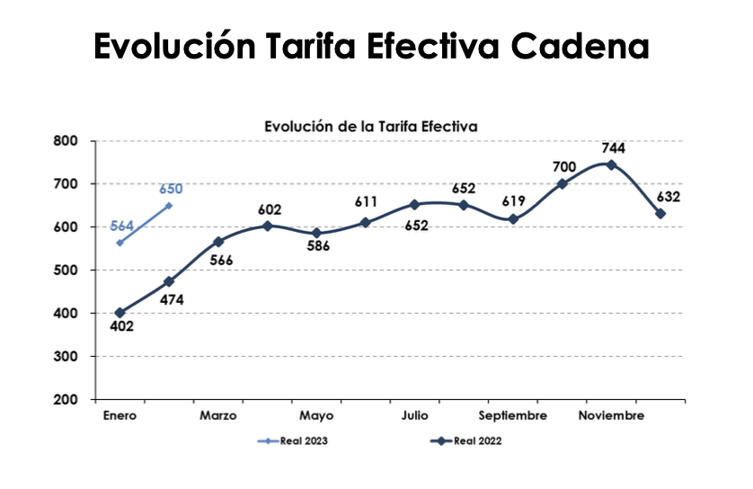 Durante el mes de febrero, la tarifa promedio alcanzó el nivel más alto en la historia de la Cadena. Destacamos los resultados de las zonas del Noreste y Sureste, las cuales registraron las mejores ocupaciones de la Cadena. Atribuimos los buenos resultados del mes a la reactivación de las actividades en la Frontera Norte, el Corredor Energético y el Pacífico. Continuamos observando una recuperación importante en la zona del Bajío en donde hemos capturado demanda de clientes que han retomado operaciones en la zona.