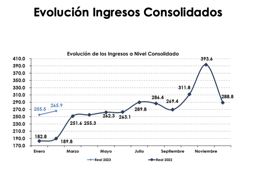 Finalmente, los ingresos a nivel consolidado para febrero registraron un monto de $265.9 millones de pesos, lo cual representó un incremento del 40.1% (vs. el año anterior 2022).