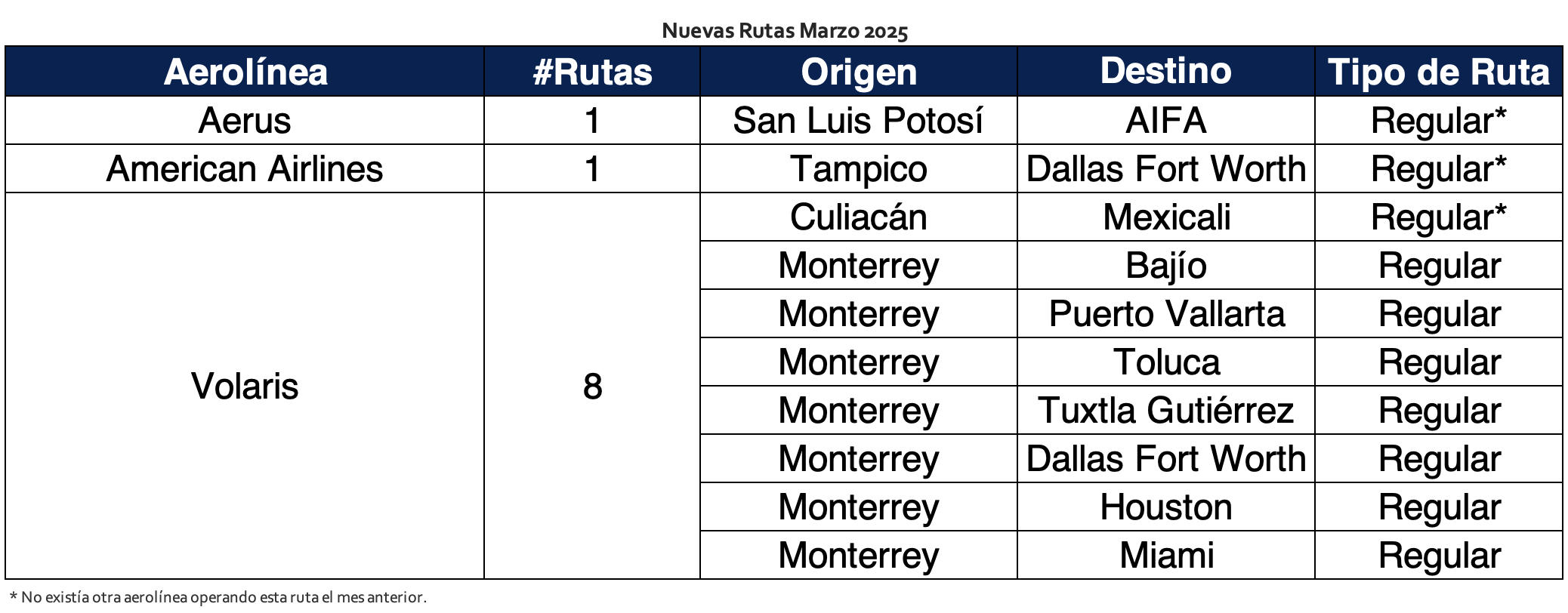 Durante el mes, diez rutas iniciaron operaciones: