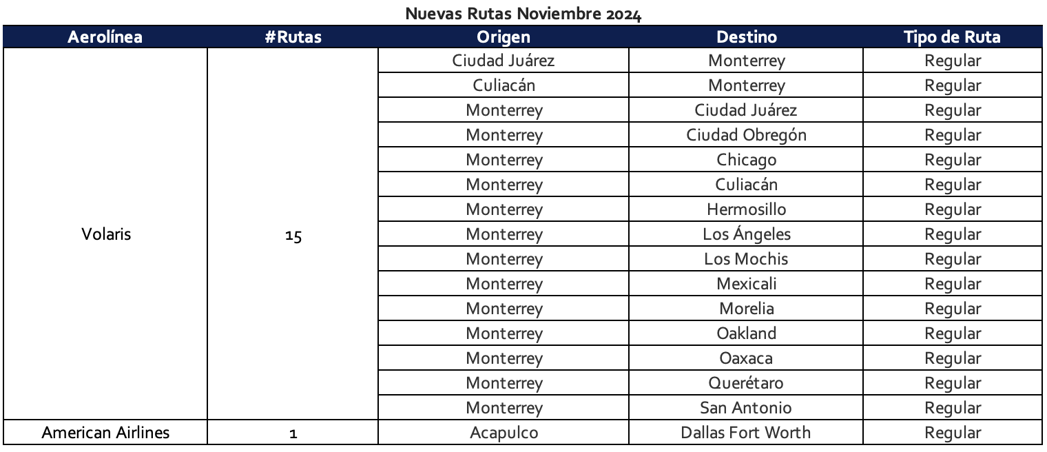 Durante el mes, dieciséis rutas iniciaron operaciones: