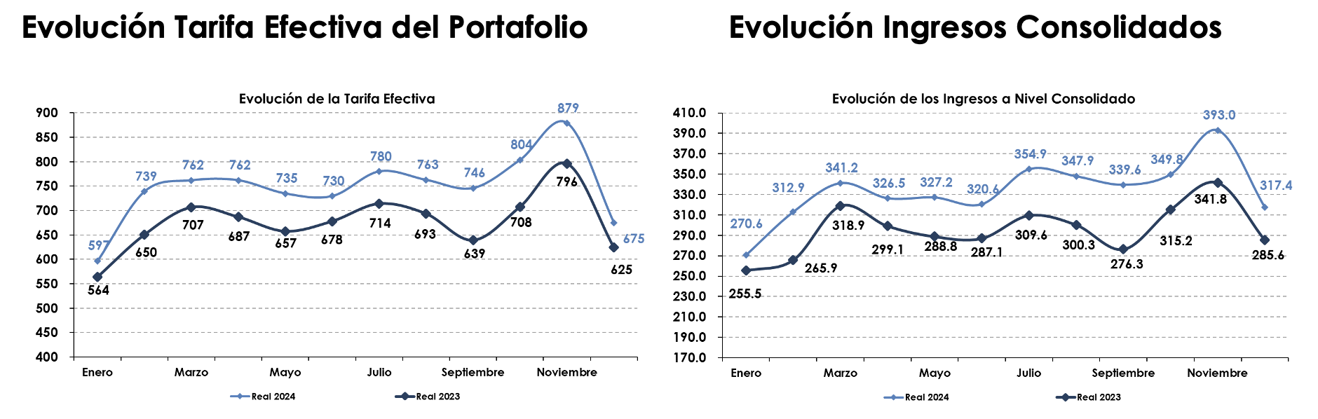 Por último, los ingresos a nivel consolidado para el mes de diciembre registraron un monto de $317.4 millones de pesos, lo cual representó un incremento del 11.1% vs. el mismo mes del año 2023.
