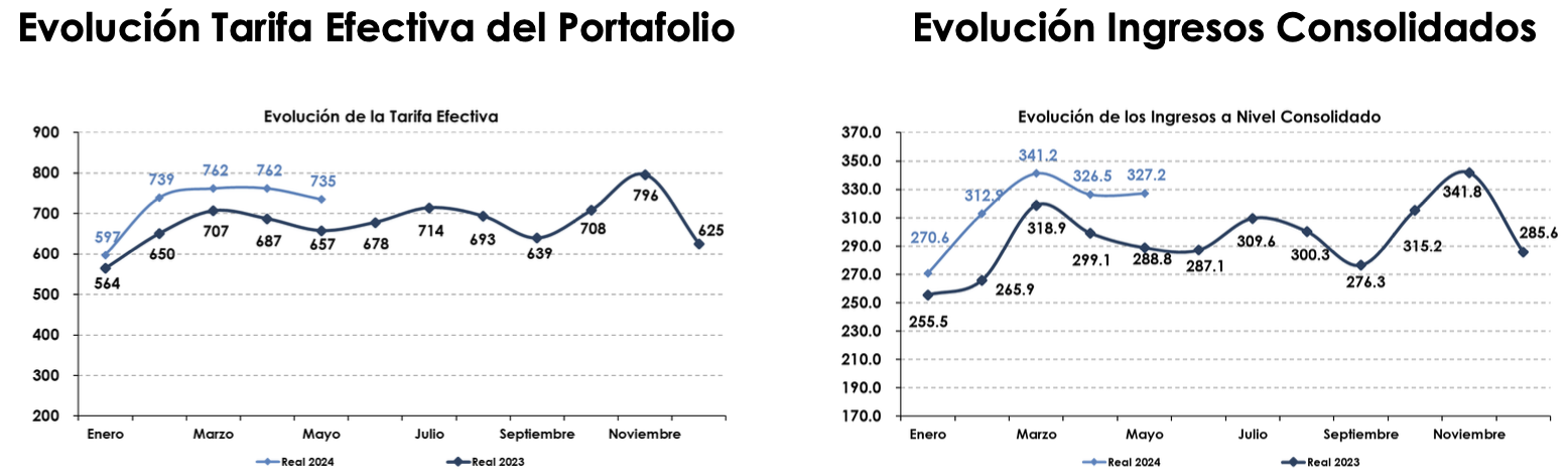 Por último, los ingresos a nivel consolidado para mayo registraron un monto de $372.2 millones de pesos, lo cual representó un incremento del 13.3% vs. el mismo mes del año 2023.